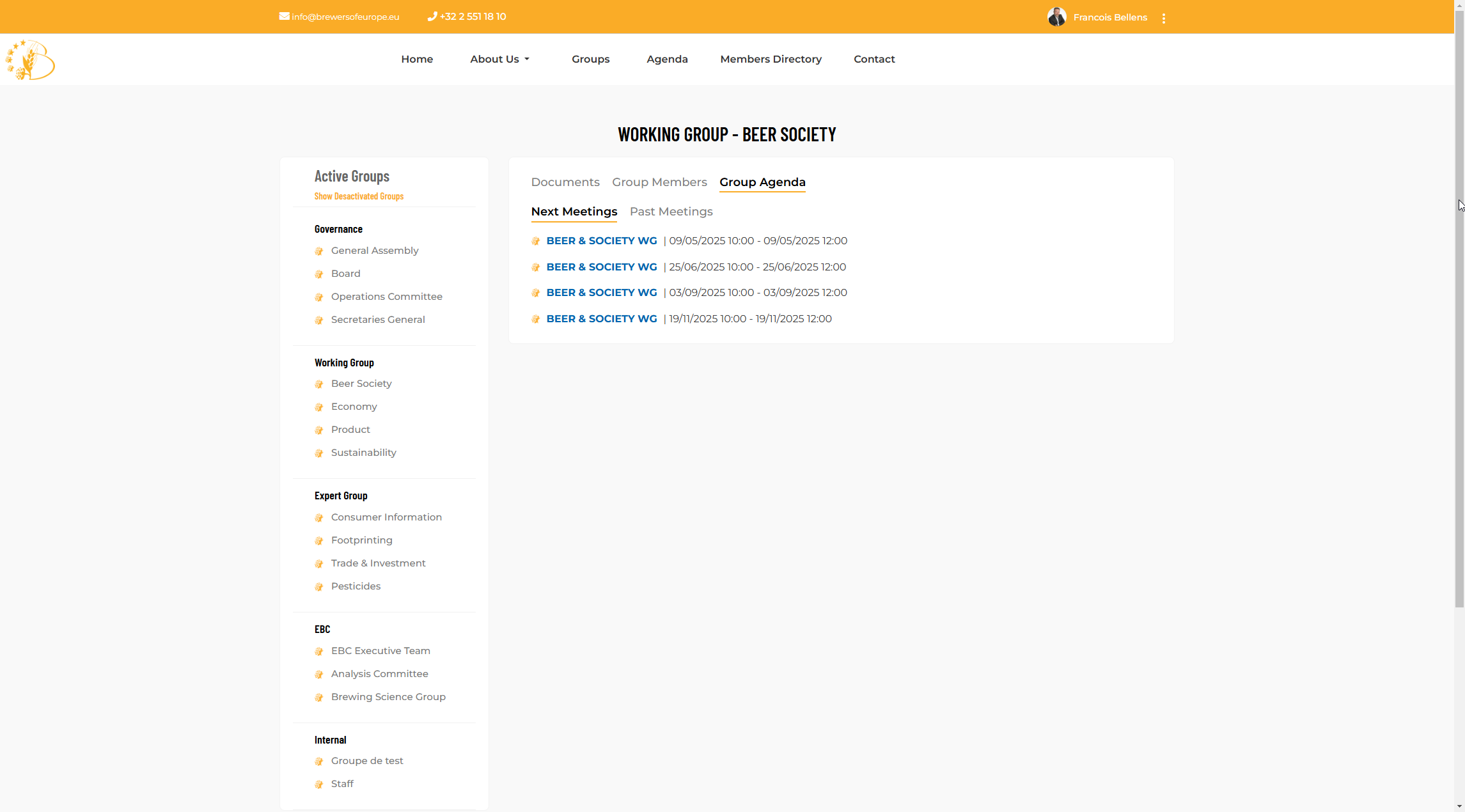 Agenda: Displays upcoming meetings for the group along with an archive of past meetings. All important documents related to a meeting can be accessed from this section as well.